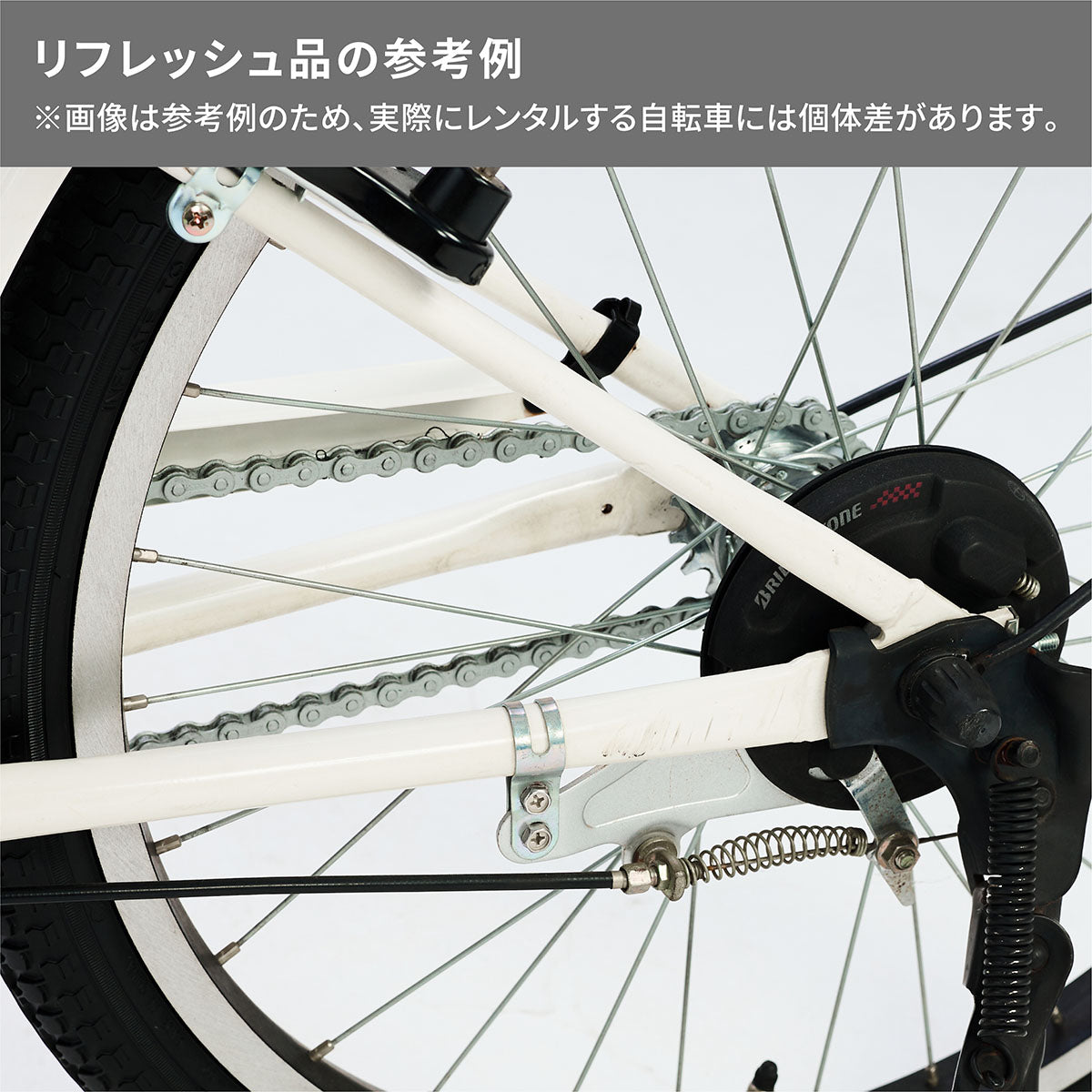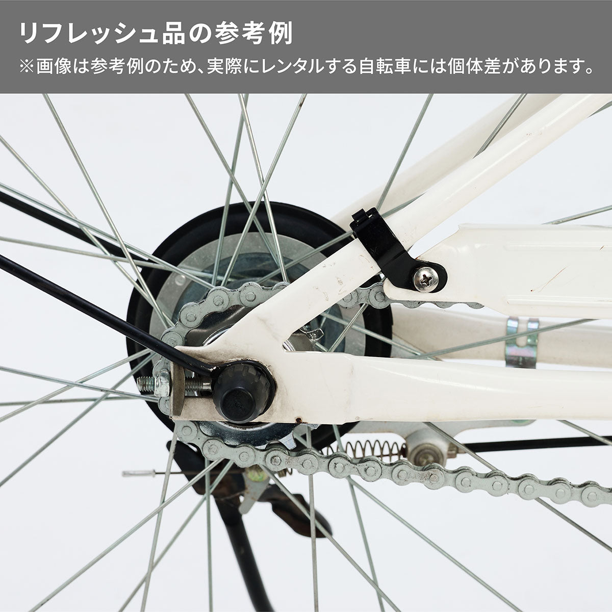 ※部品交換作業などを行うため、新品のレンタル品と仕様が異なったり、過年度モデルを取り扱うためモデルの年式(車種略号)が異なる場合があります。適正身長範囲116~140cm